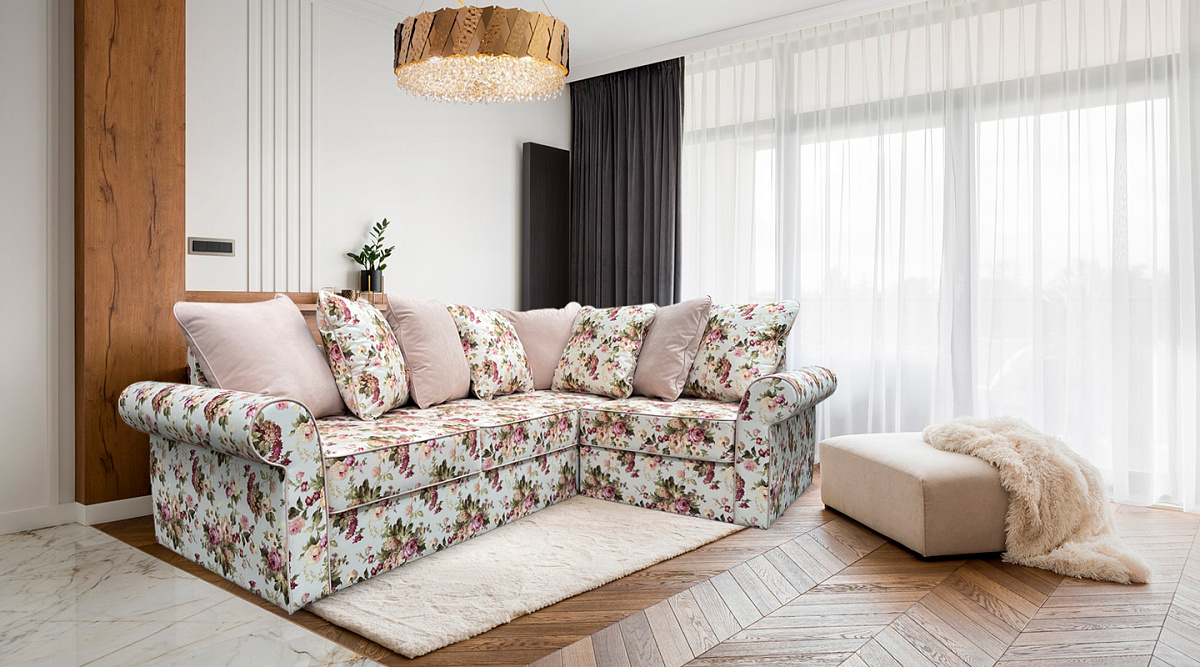 ![]() Угловой диван Халланд 2 Розовый/цветы