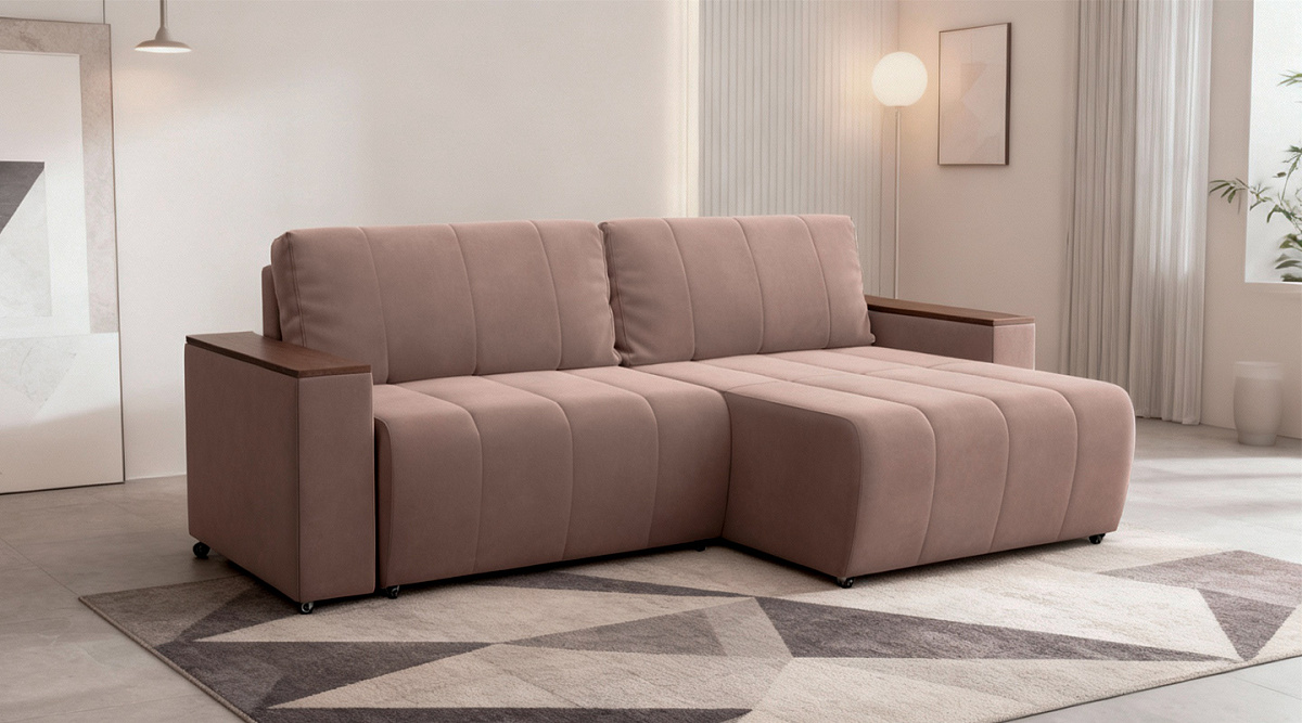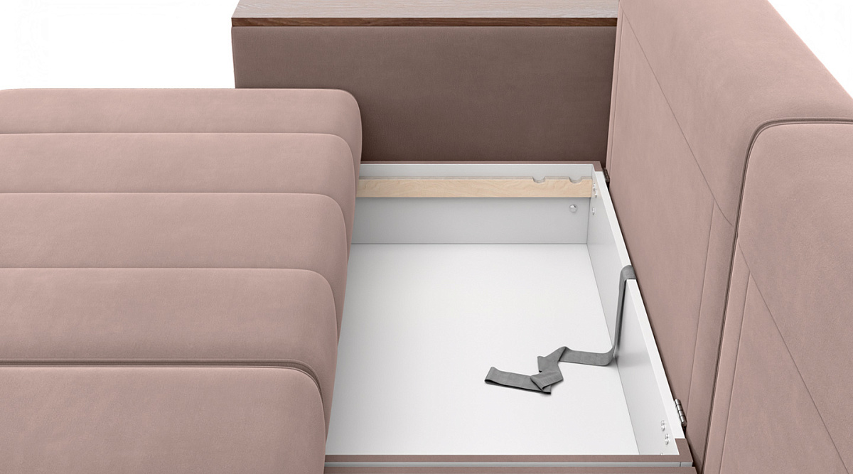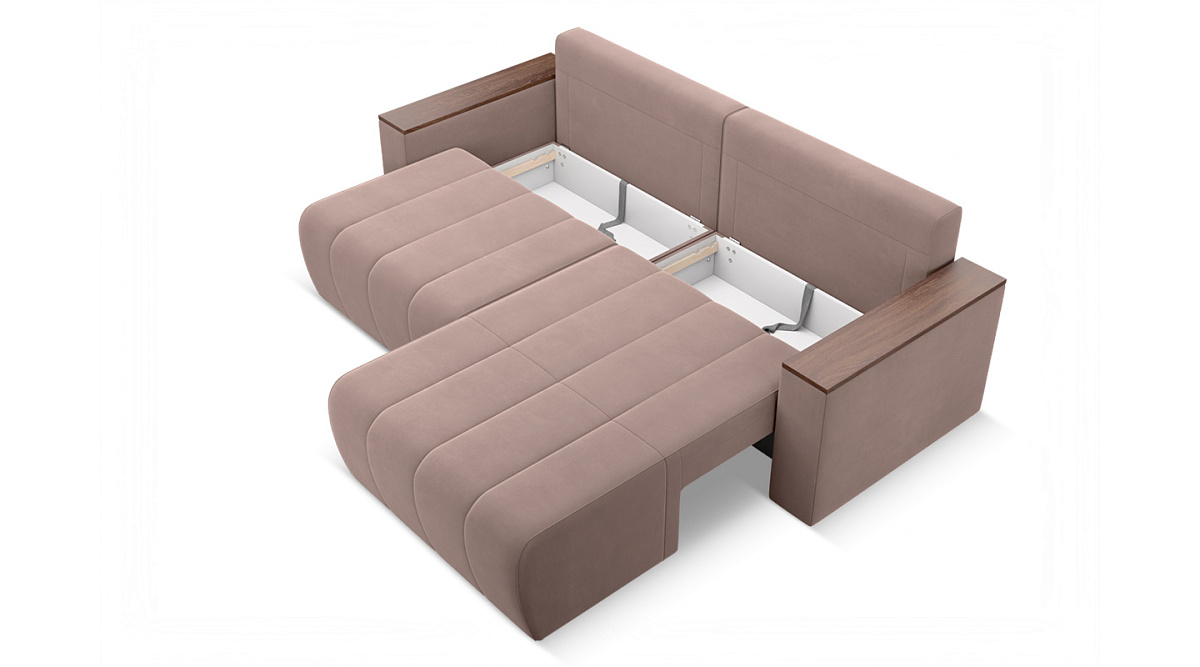 Надежный и простой в использовании. Благодаря отсутствию петель на стыке спальная поверхность получается ровной и удобной. Постель располагается вдоль дивана и не занимает много места при раскладывании, что идеально для интерьера узких помещений. Еще один плюс: в отличие от классических диванов-«книжек», «еврокнижку» не нужно отодвигать от стены каждый раз при раскладывании – конструкция модели выдвигается вперед.