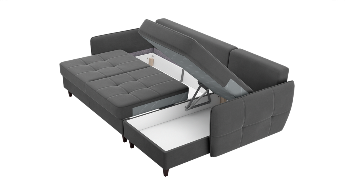 Имеет все преимущества «еврокнижки», и даже больше. Диваны с таким механизмом не оснащены роликами и раздвигаются не касаясь пола – сиденье словно шагает вперед, оставляя напольное покрытие нетронутым и защищая его от повреждений.