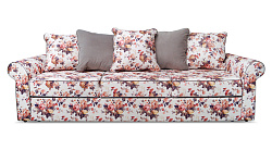 Модель представлена в нейтральный серых оттенках и ярких цветочных узорах на бежевом фоне. Диван отлично подойдет и для зонирования комнаты, и для нейтральных простых интерьеров. Он всегда будет в центре внимания.