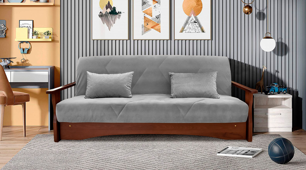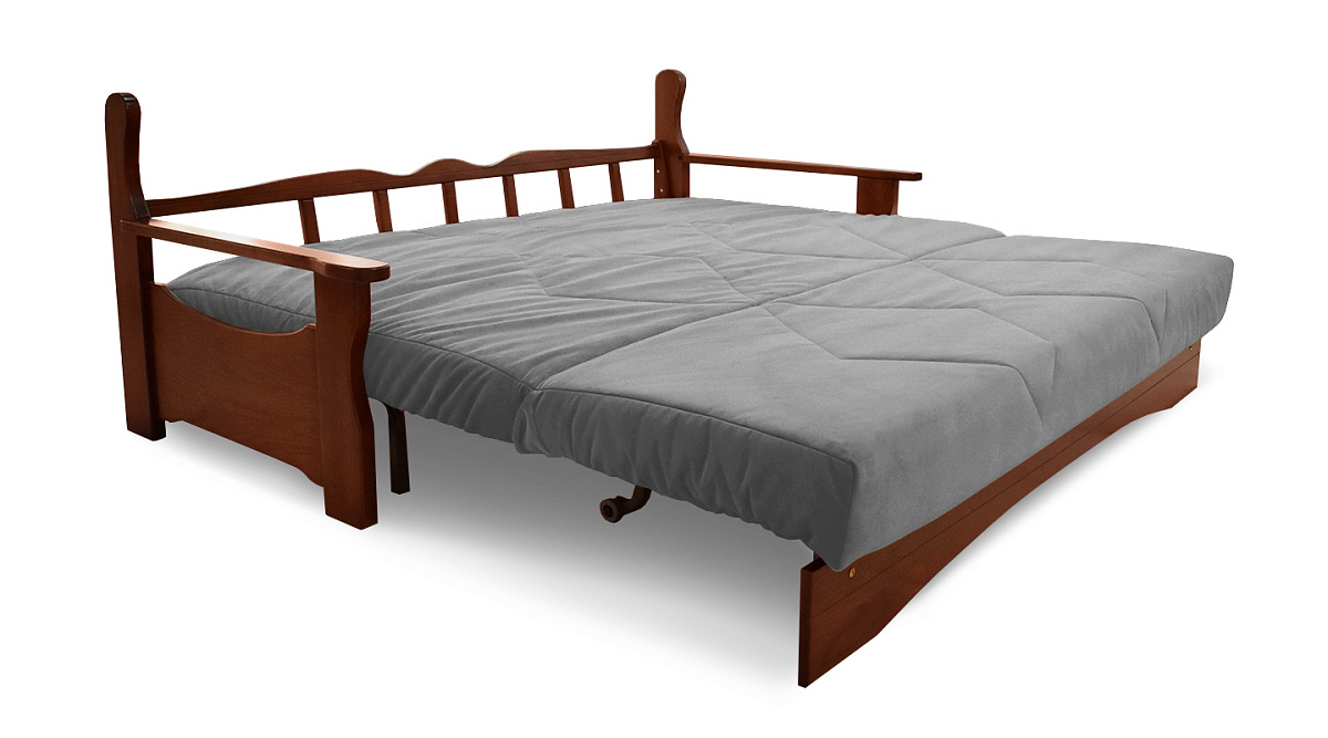 Матрас дивана состоит из качественного пенополиуретана высокой плотности. Он размещен на березовых латах - реечное основание для крепления матраса. Латы, по-другому они называются ламели, равномерно распределяют вес тела человека и снижают нагрузку на спину.