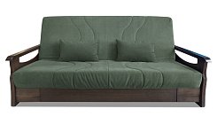 Надежный и простой в использовании. Благодаря отсутствию петель на стыке спальная поверхность получается ровной и удобной. Постель располагается вдоль дивана и не занимает много места при раскладывании, что идеально для интерьера узких помещений. Еще один плюс: в отличие от классических диванов-«книжек», «еврокнижку» не нужно отодвигать от стены каждый раз при раскладывании – конструкция модели выдвигается вперед.