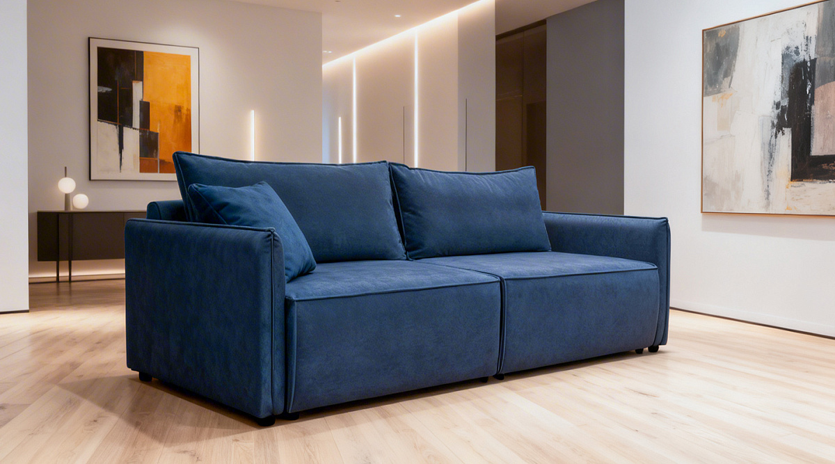 Прямой диван Киото Синий велюр