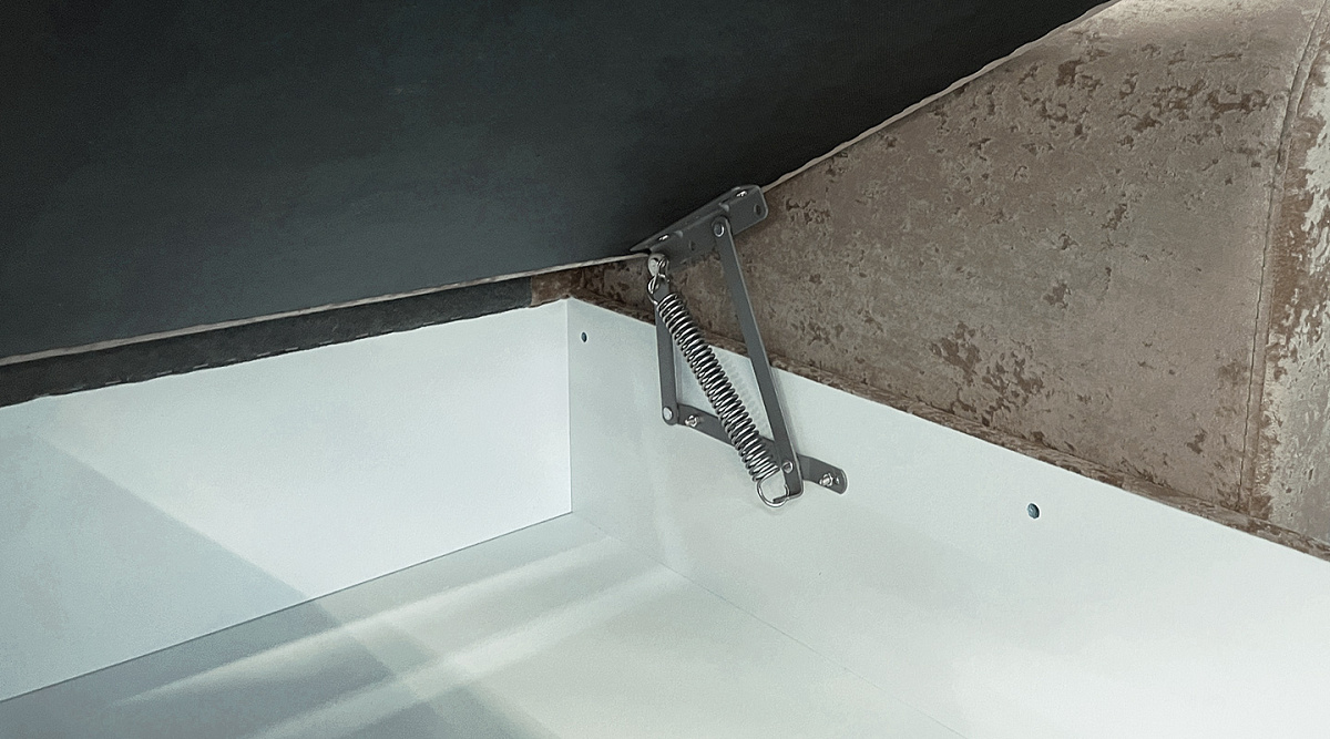 Бельевой короб, расположенный в оттоманке, позволяет бережно хранить спальные принадлежности или другие вещи. В зависимости от конструктивных особенностей пространства угол можно устанавливать как на левую, так и на правую сторону.