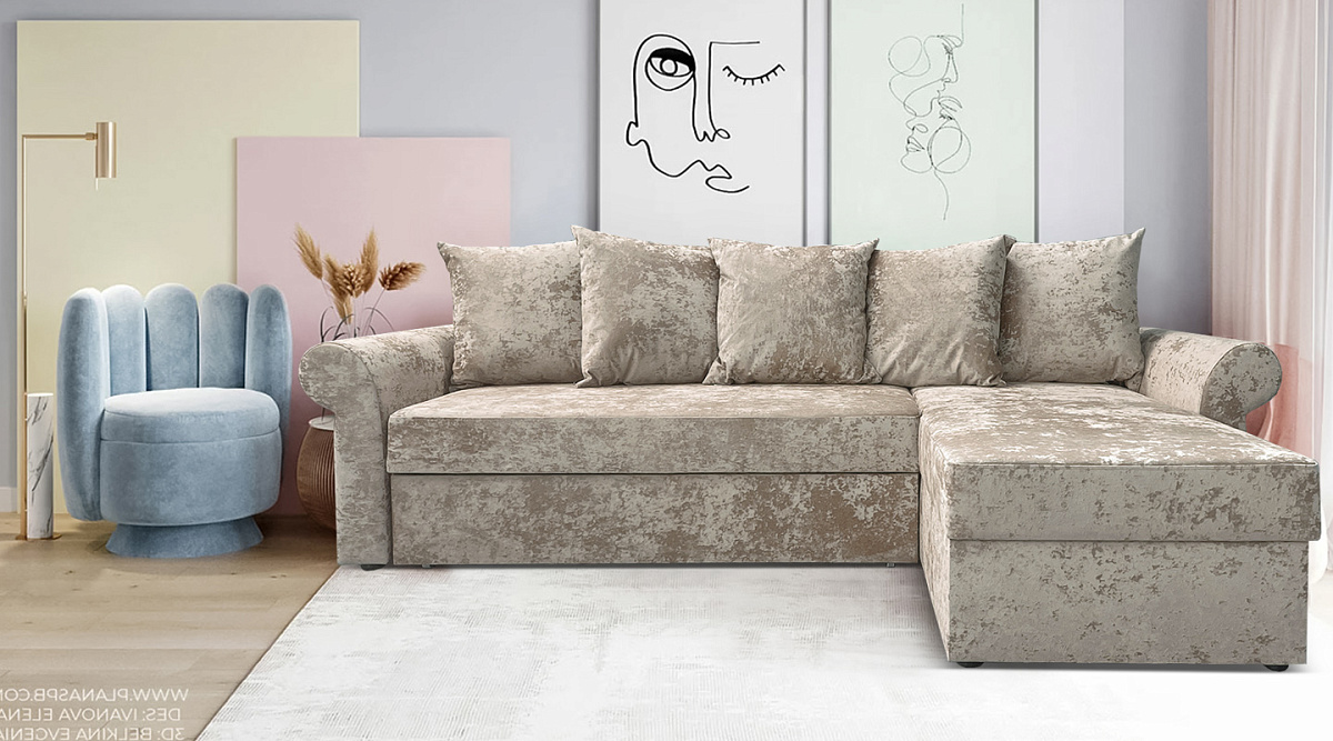 Угловой диван Астрид (Рейн) Бежевый велюр плюш