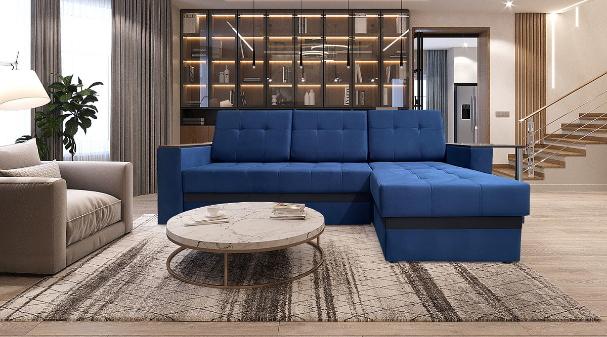 Диван угловой Атланта Синий велюр