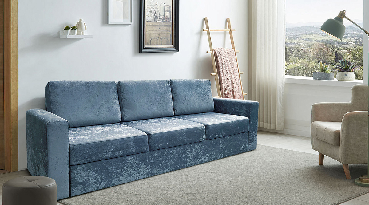 Диван "Йеллинг" оснащен механизмом "Дельфин", который позволяет легко и быстро превратить его в удобное спальное место. Вам нужно лишь потянуть за специальную ручку, и сиденье поднимется, превращаясь в горизонтальное ложе. Рекомендованная нагрузка на одно спальное место составляет 120 кг.