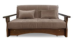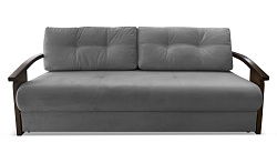Прямой диван “аккордеон” с деревянным подлокотником из бука выглядит интересно и элегантно. Бук - это прежде всего красивая порода дерева с неповторимым узором на срезе и благородным окрасом. По внешнему виду мебель из бука не уступает более дорогостоящей продукции из массива дуба.