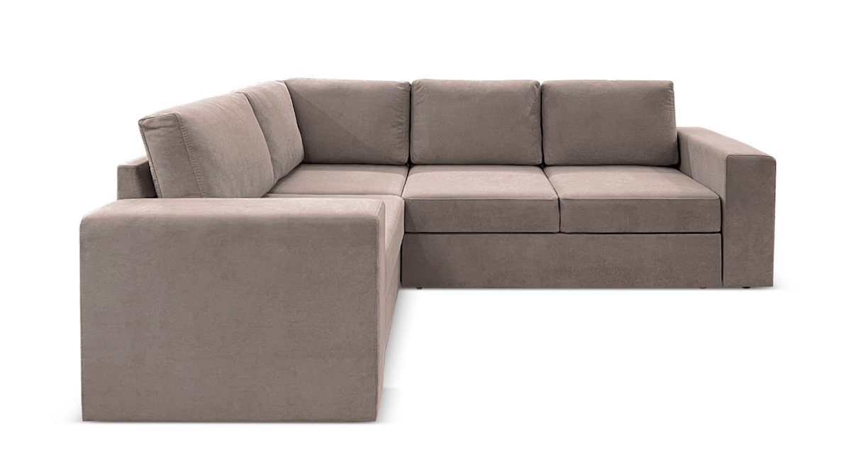 Главная отличительная черта этого дивана — элегантность и лаконичность, подчеркнутая комплектом из пяти подушек, что выполняют функцию спинки. Расположение оттоманки можно менять, а вместе с этим можно выбирать угол комнаты, куда поставить диван - правый или левый.