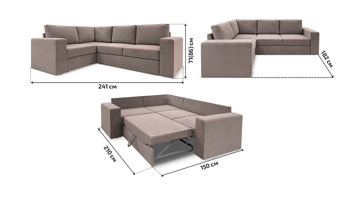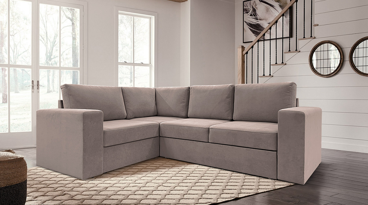 Благодаря механизму “дельфин” для трансформации дивана в кровать понадобится минимум свободного места.