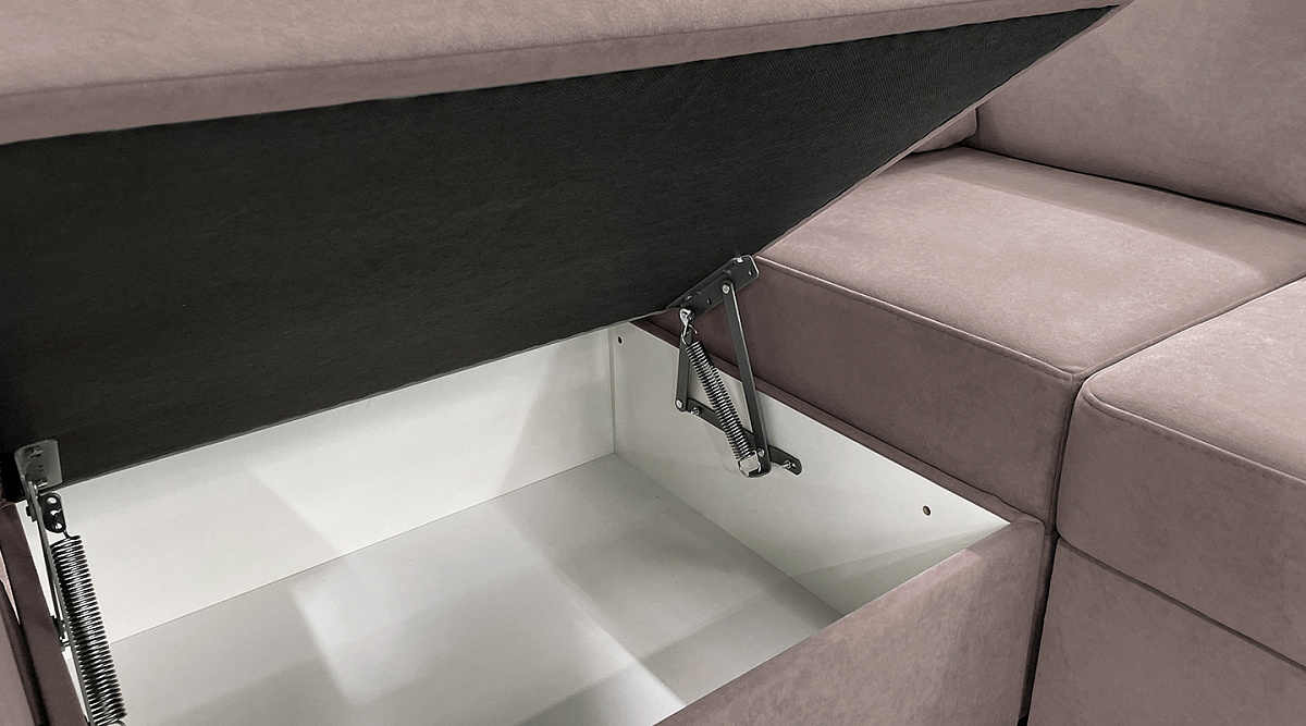 Внутри дивана есть ящик для хранения белья. Им можно пользоваться по назначению - складывать туда постельные принадлежности, или хранить там другие вещи, например, игрушки или заготовки.