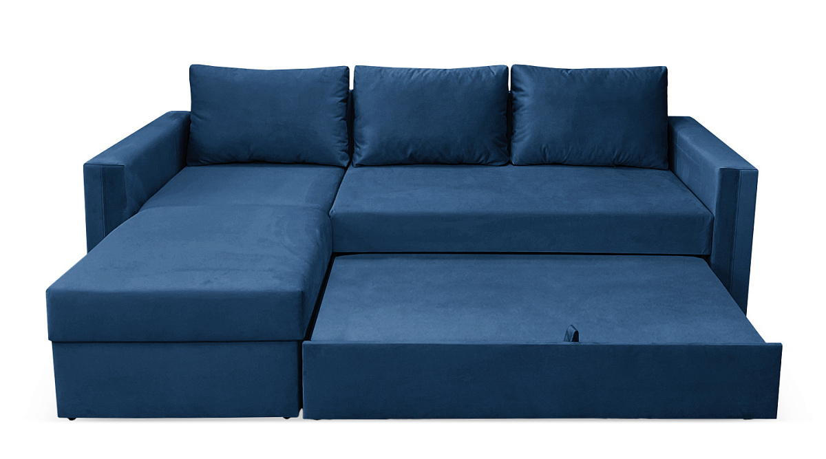 Угловой диван Лунден Синий велюр