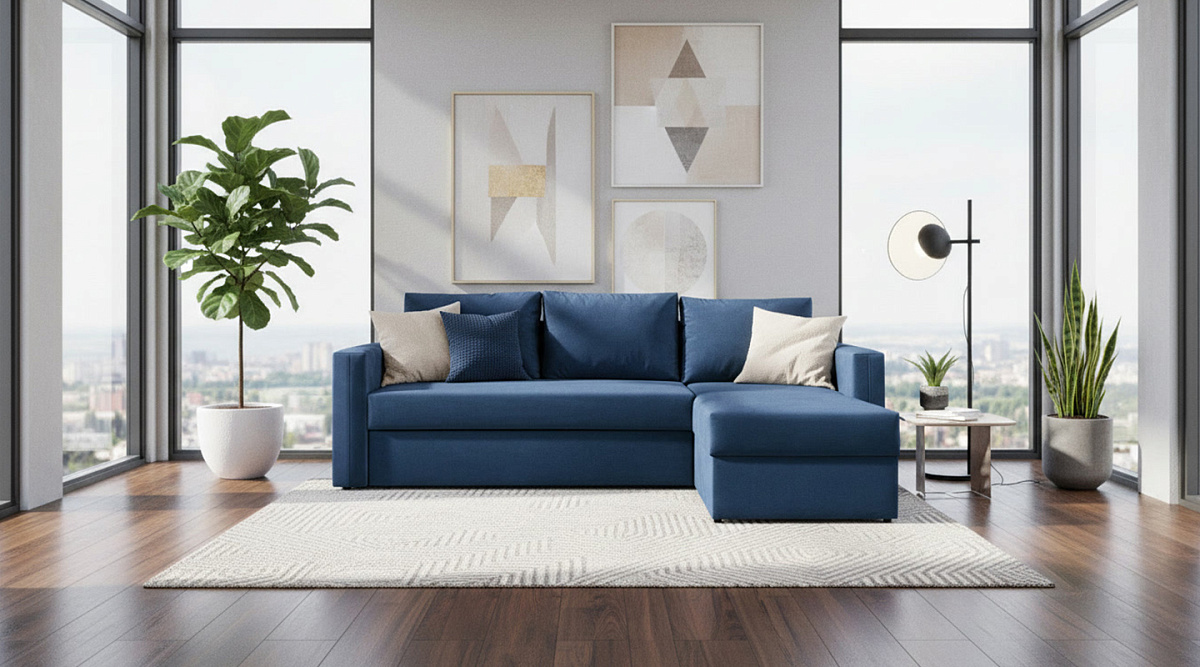 “Лунден” - классический небольшой и недорогой угловой диван. Именно этим он и ценен - отлично вписывается в наши типовые квартиры с маленькими комнатами и образует собой отдельное место для отдыха. При этом расположение оттоманки можно менять и ставить диван в любой угол - правый или левый.